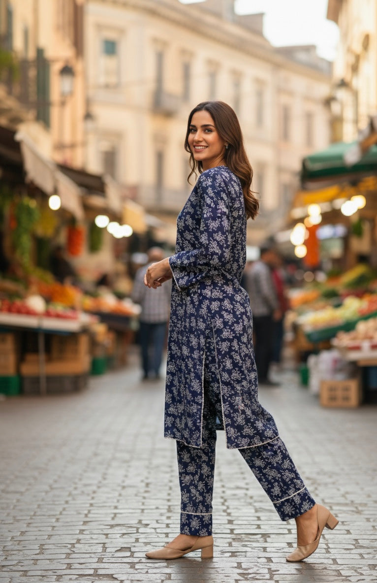 Blue Whisper – Restyled Edition is a sophisticated blend of calming tones and contemporary design. Crafted from premium printed linen, this article has been carefully restyled to deliver a modern silhouette while preserving the timeless appeal of the original print. The soothing blue palette adds a sense of elegance and versatility, making it suitable for both casual and semi-formal wear.